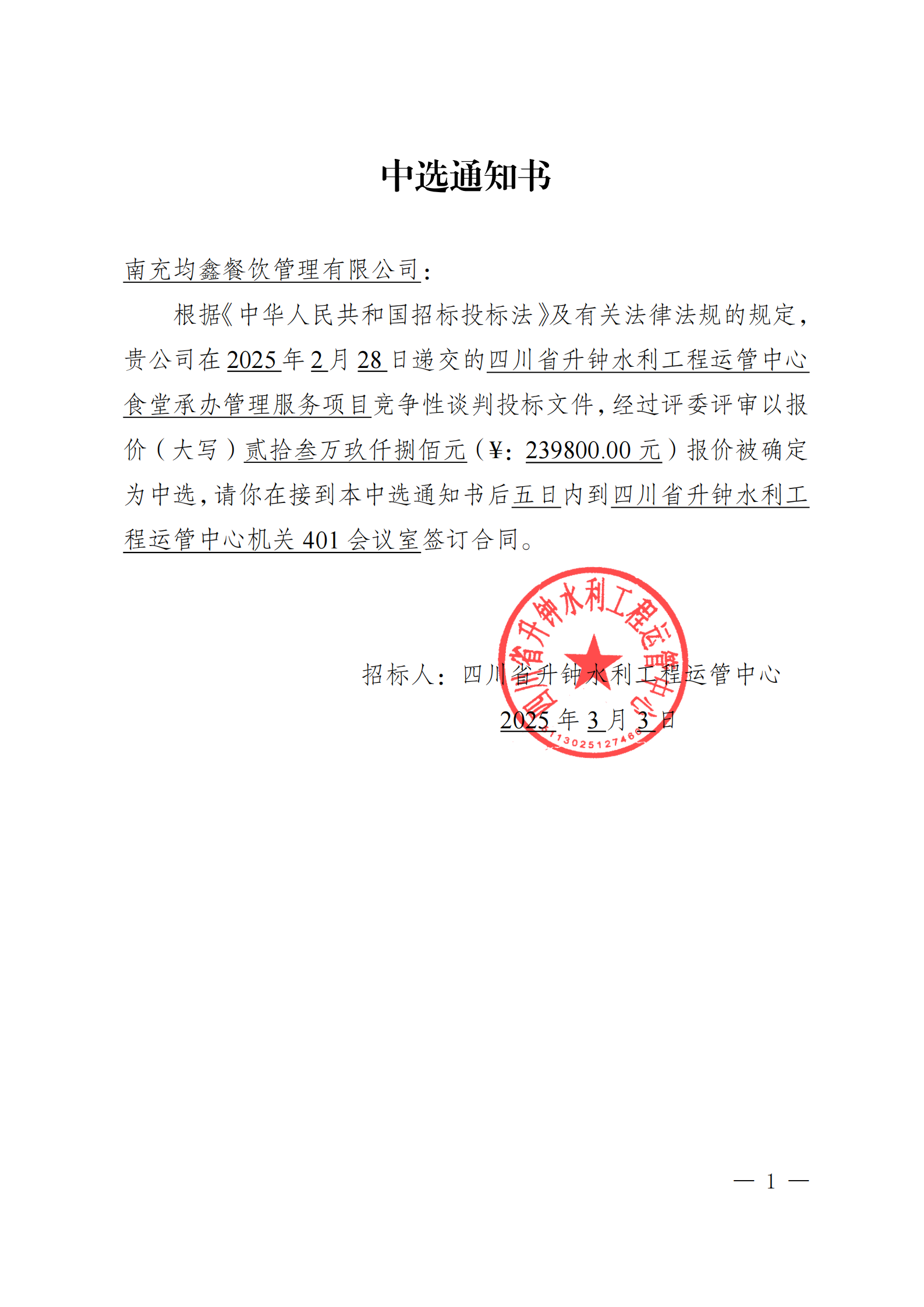四川省升鐘水利工程運(yùn)管中心房屋競(jìng)租結(jié)果公示