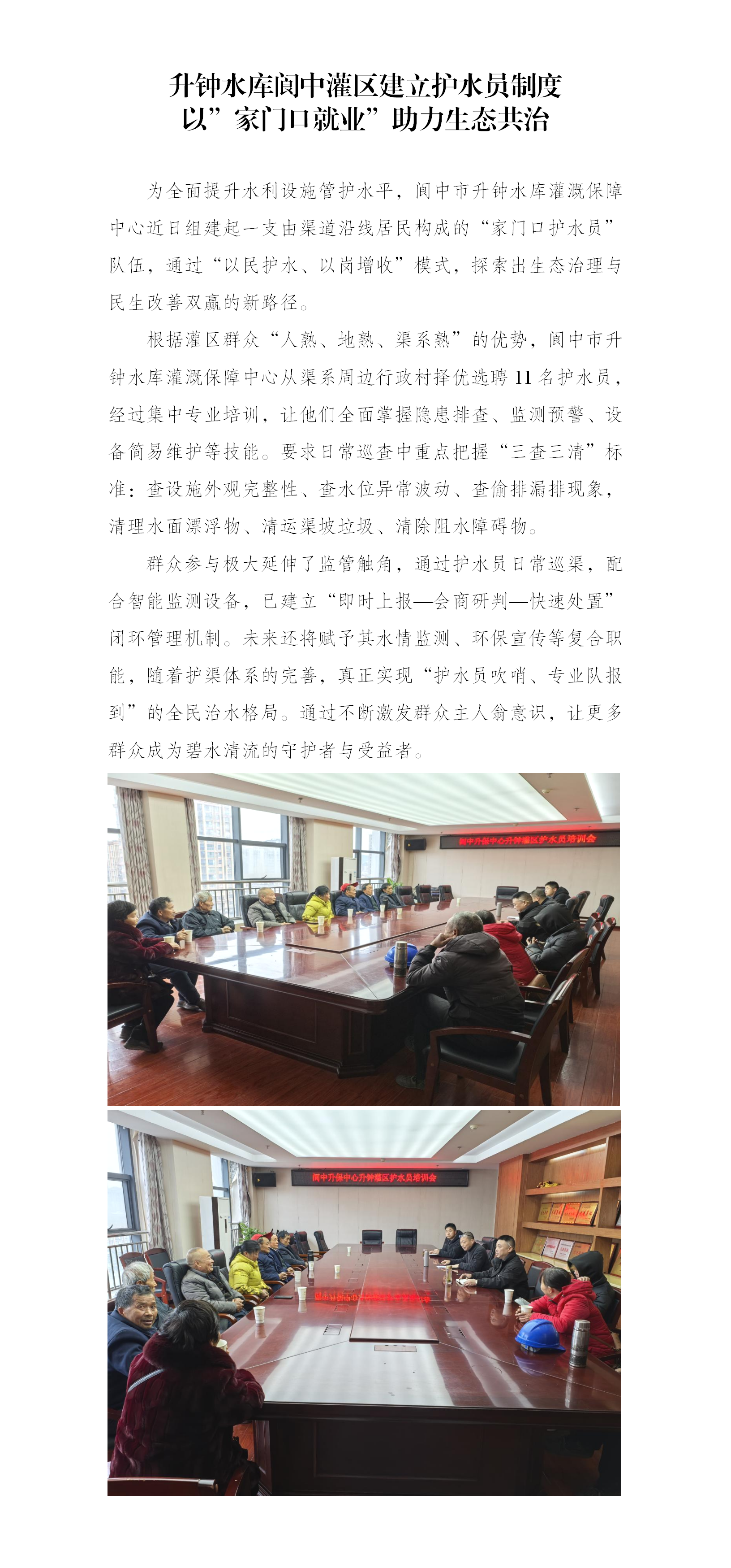 升鐘水庫閬中灌區(qū)建立護(hù)水員制度 以”家門口就業(yè)”助力生態(tài)共治