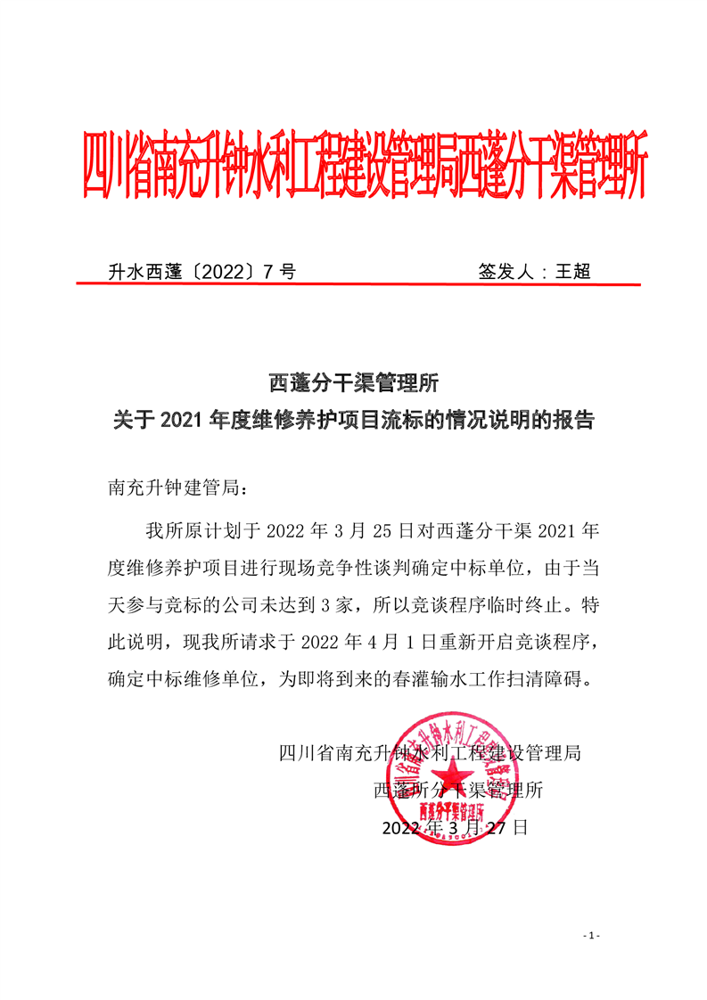 西蓬所2021年度維修養(yǎng)護(hù)項目流標(biāo)情況說明的報告
