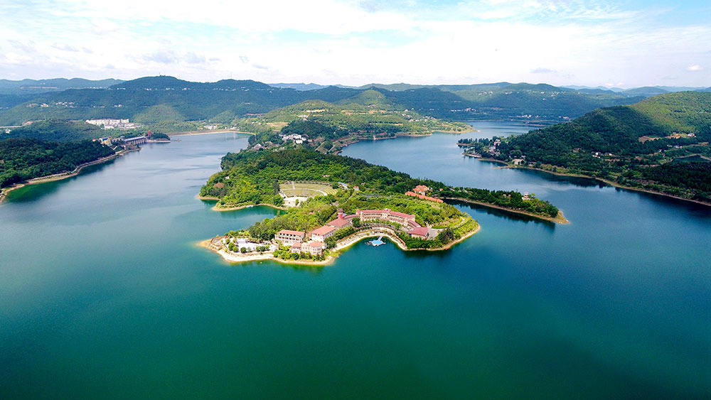 升鐘湖國家4A級(jí)旅游景區(qū) 升鐘,一顆鑲嵌在深灣璀璨的明珠。1977年,川北兒女齊上陣,于四川省南部縣碑埡斷河筑壩聚千流,從此滿湖甘露畢至,從南部流向閬中、西充、順慶、嘉陵、蓬安、武勝,像母親的血液流淌在川北大地,滋養(yǎng)著川北兒女幸福地生活。45年過去了,大川北水旱從人,大南充日新月異,大升鐘日競朝暉,綠水青山帶笑顏,緊跟時(shí)代再向前。