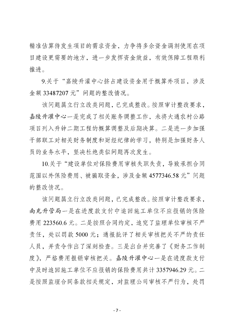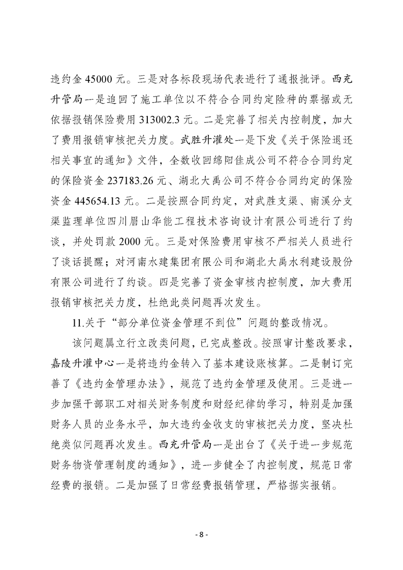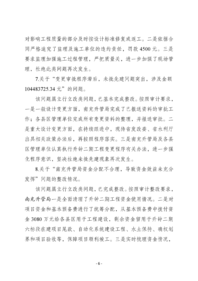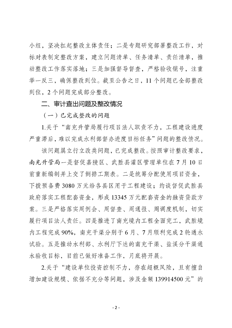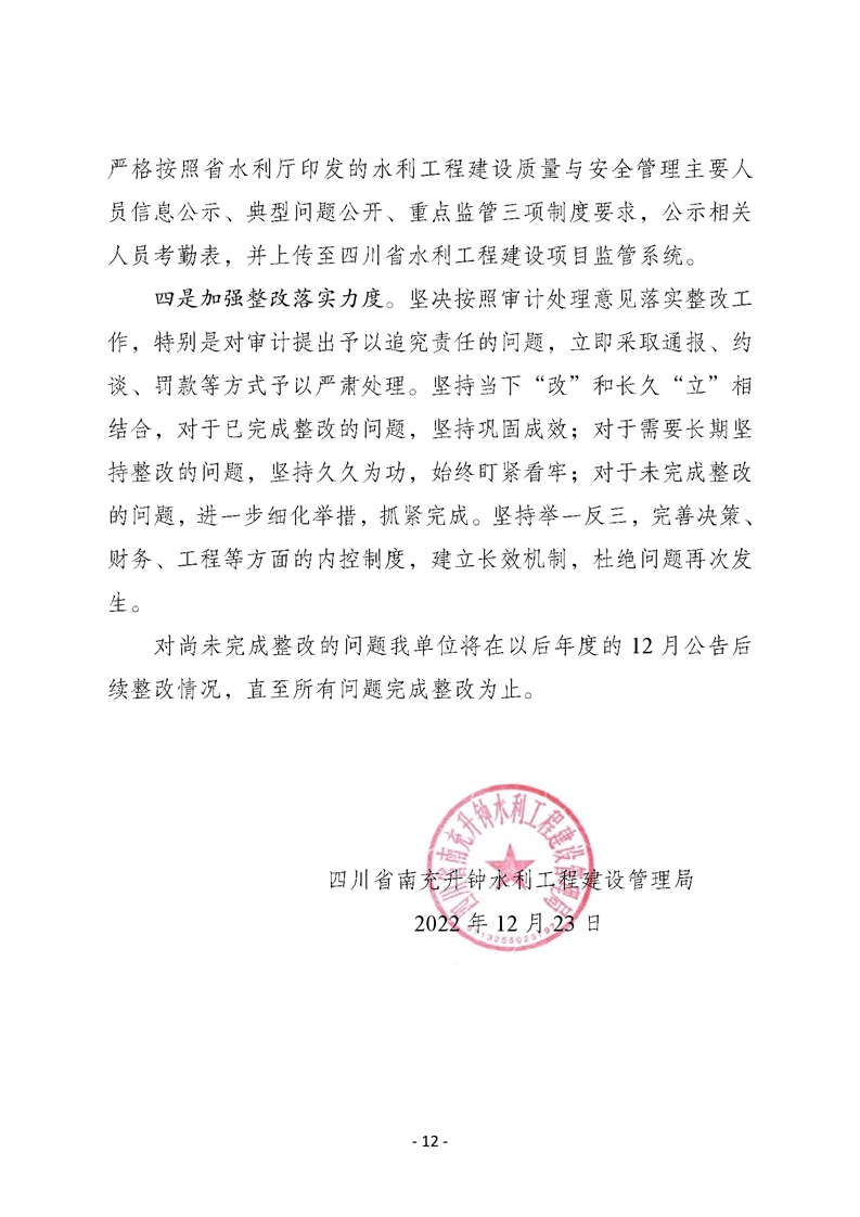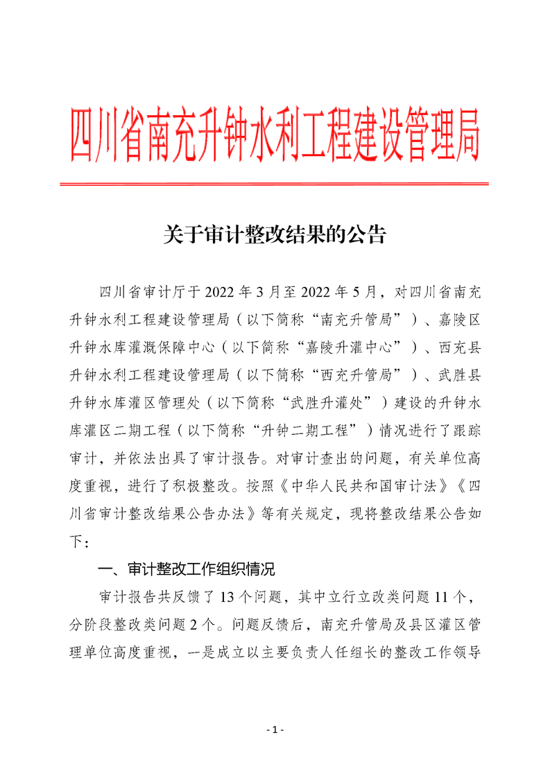 四川省南充升鐘水利工程建設(shè)管理局關(guān)于審計(jì)整改結(jié)果的公告