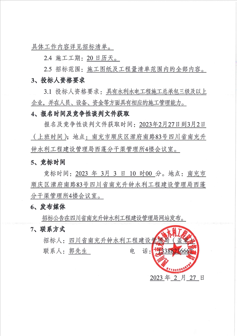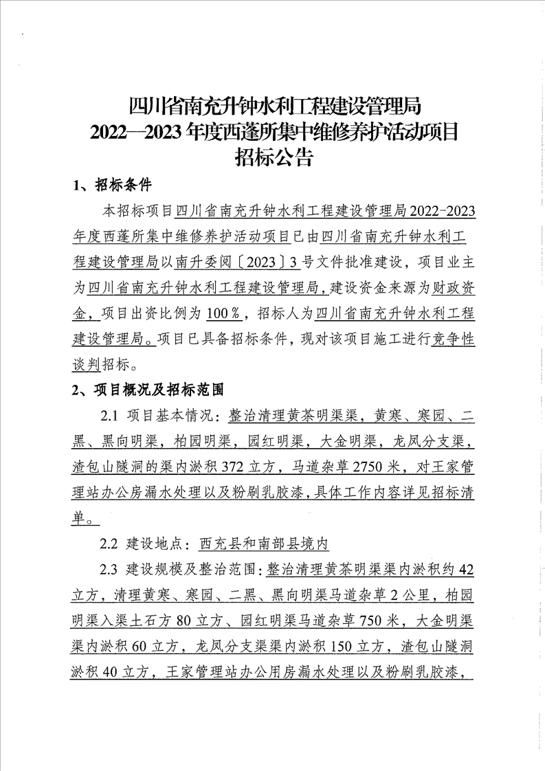 | 四川省南充升鐘水利工程建設(shè)管理局2022—2023年度西蓬所集中維修養(yǎng)護(hù)活動(dòng)項(xiàng)目招標(biāo)公告 |