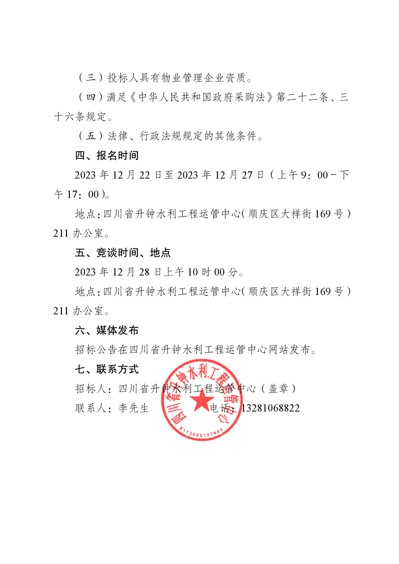 四川省升鐘水利工程運管中心房屋競租結果公示