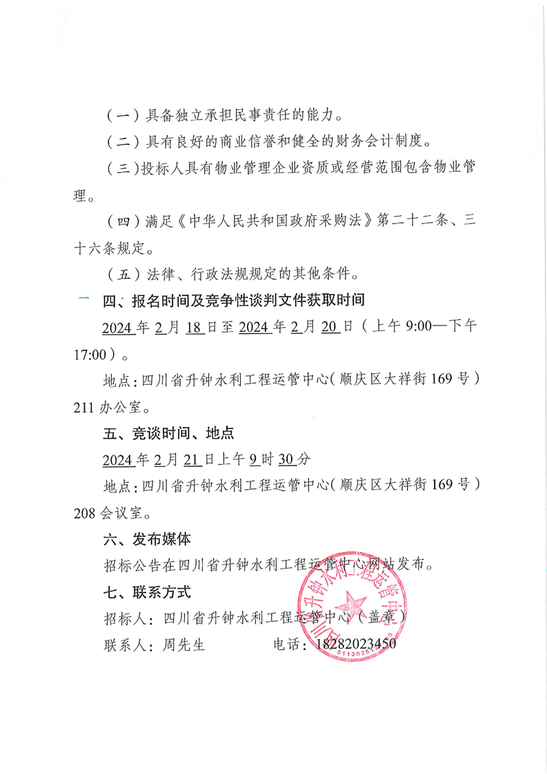 四川省升鐘水利工程運(yùn)管中心房屋公開招租公告