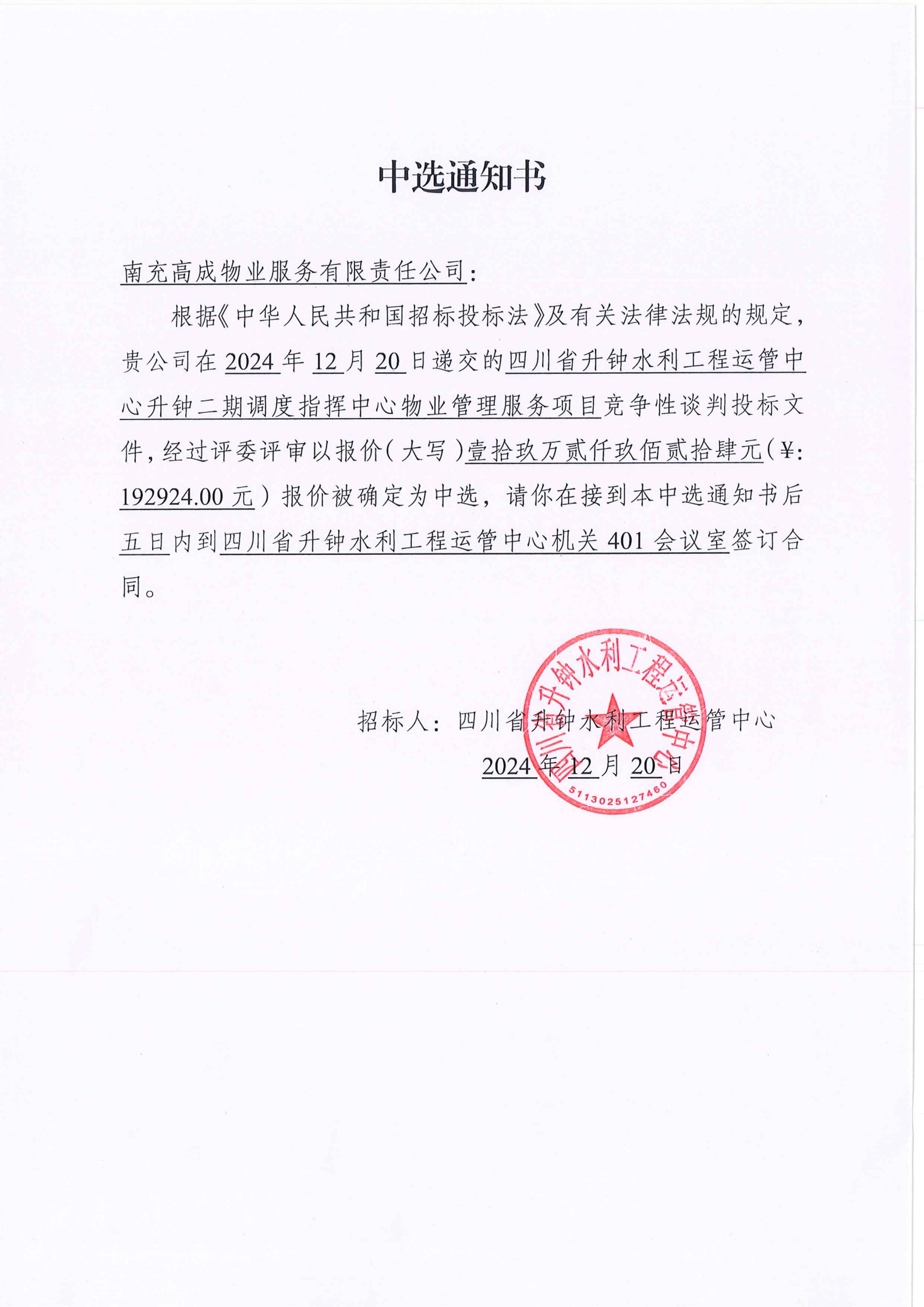 四川省升鐘水利工程運管中心房屋競租結(jié)果公示