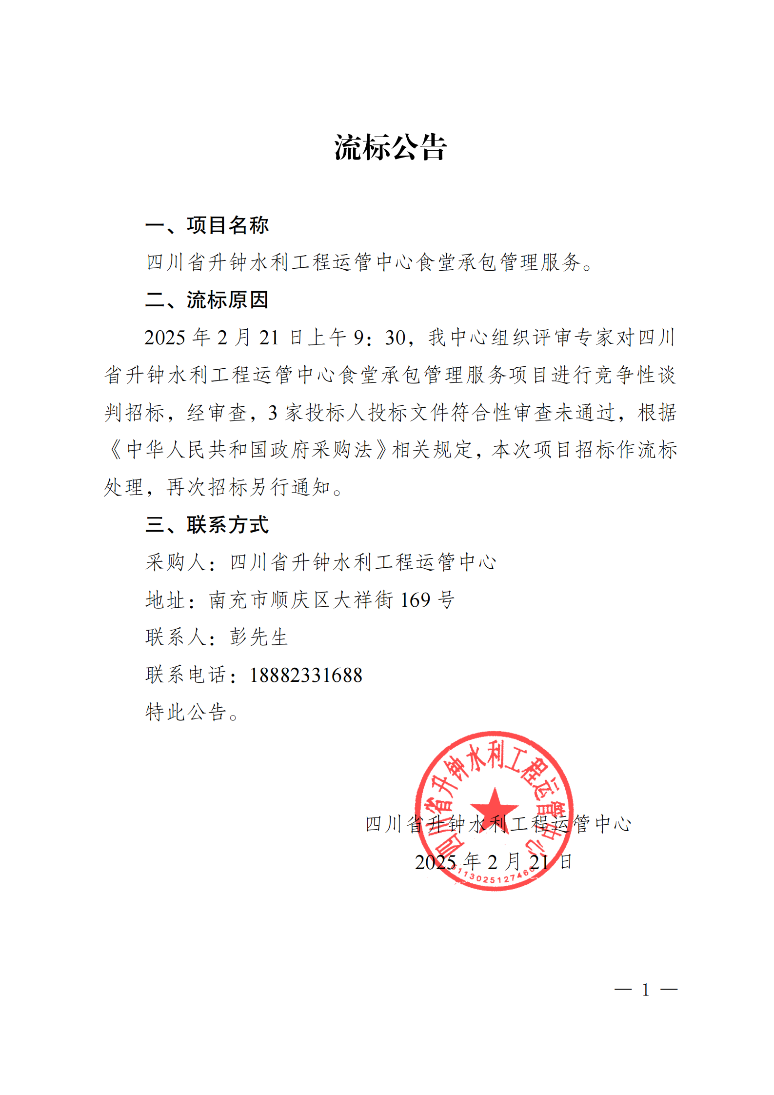 四川省升鐘水利工程運(yùn)管中心食堂承包管理服務(wù)項(xiàng)目(第二次)招標(biāo)公告