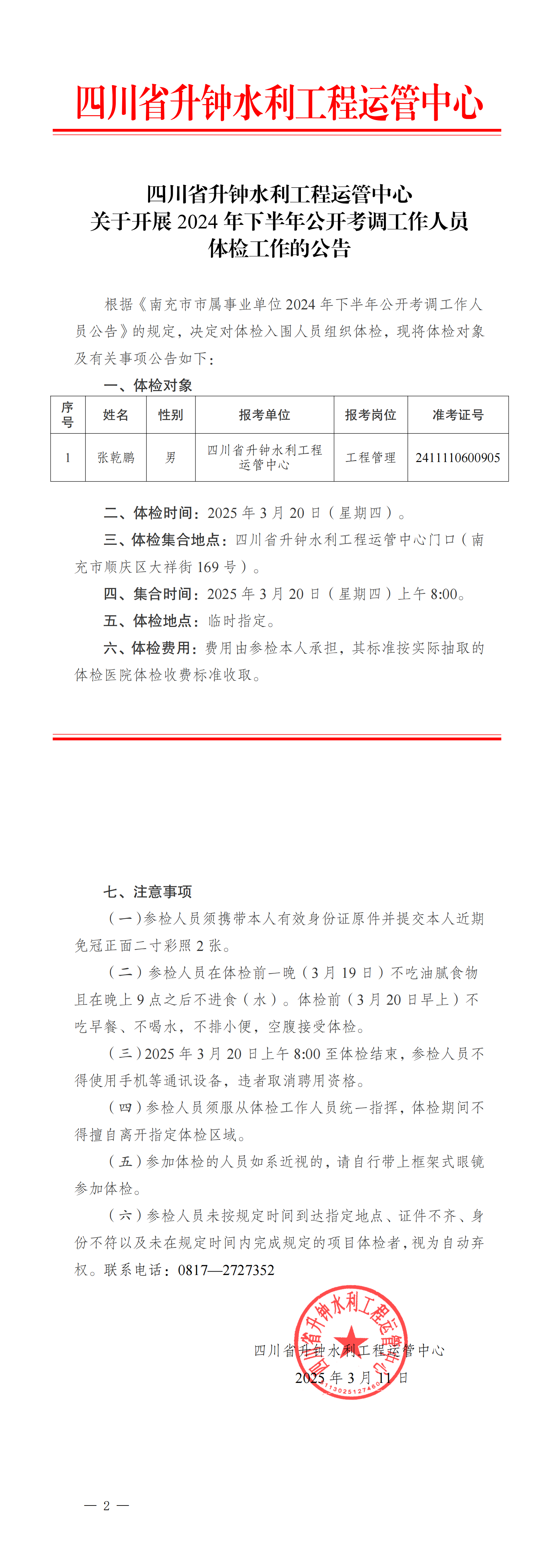 關(guān)于開展2024年下半年公開考調(diào)工作人員體檢工作的公告