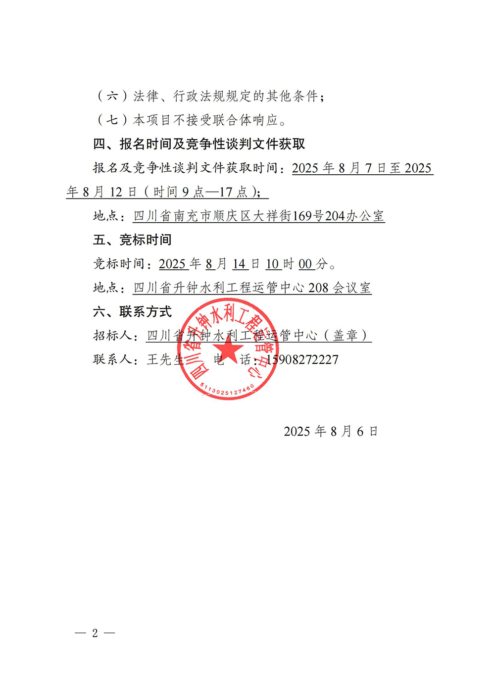 四川省升鐘水利工程運管中心房屋競租結(jié)果公示