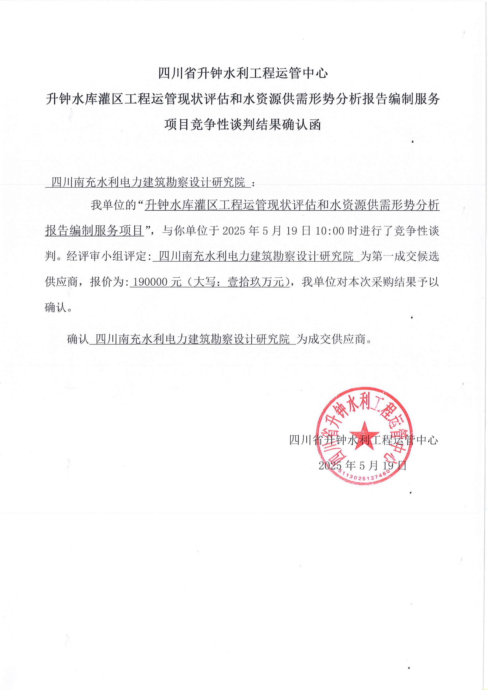 四川省升鐘水利工程運管中心房屋競租結(jié)果公示