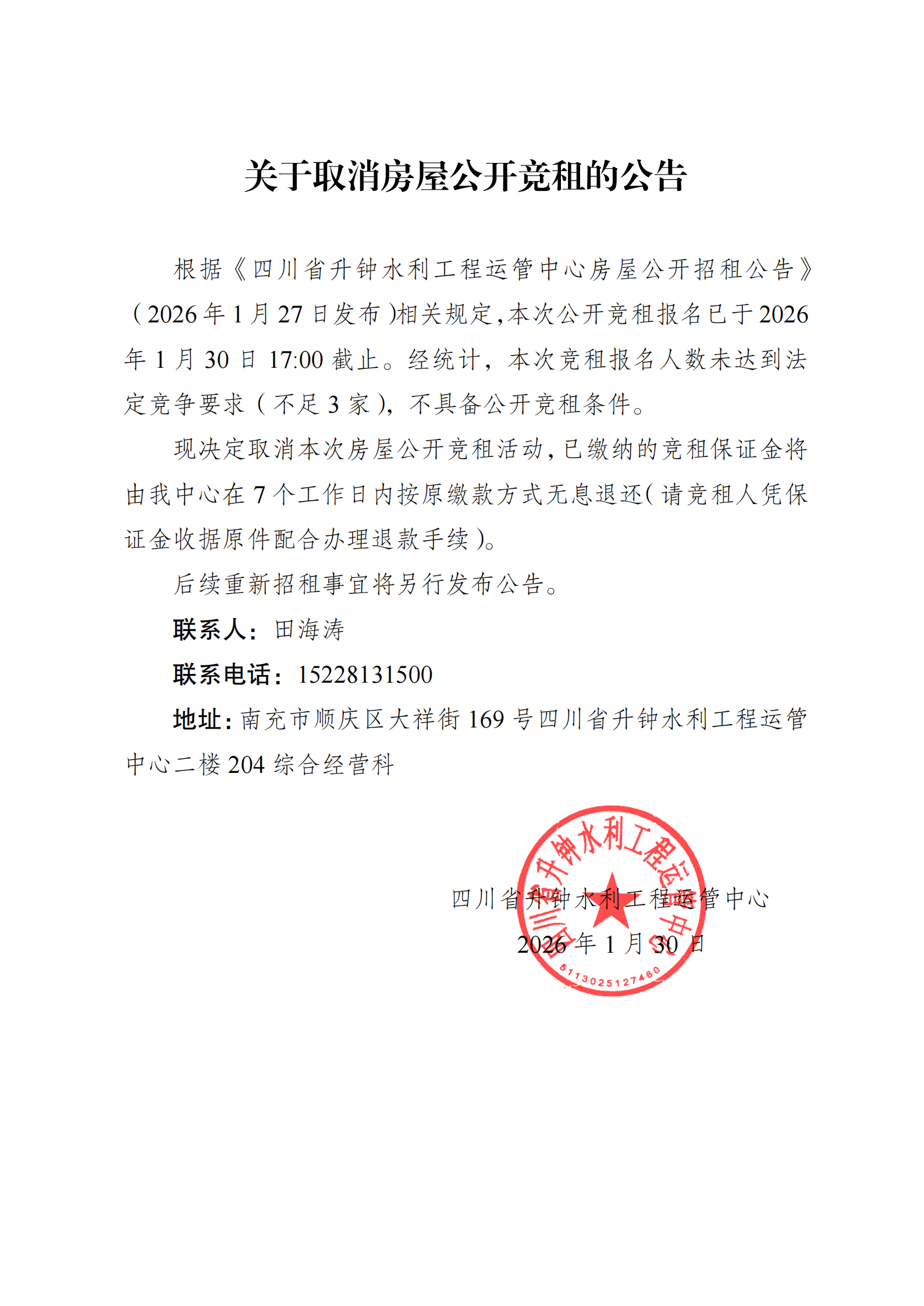 關(guān)于取消房屋公開競租的公告