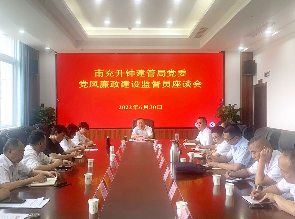 6月30日下午,南充升鐘建管局在機(jī)關(guān)401會(huì)議室組織召開(kāi)2022年黨風(fēng)廉政建設(shè)監(jiān)督員座談會(huì)。局黨委委員、紀(jì)委書(shū)記柴小強(qiáng)主持會(huì)議。局紀(jì)委委員,黨風(fēng)廉政建設(shè)監(jiān)督員,局紀(jì)委、監(jiān)察室、人教科相關(guān)人員參加會(huì)議。