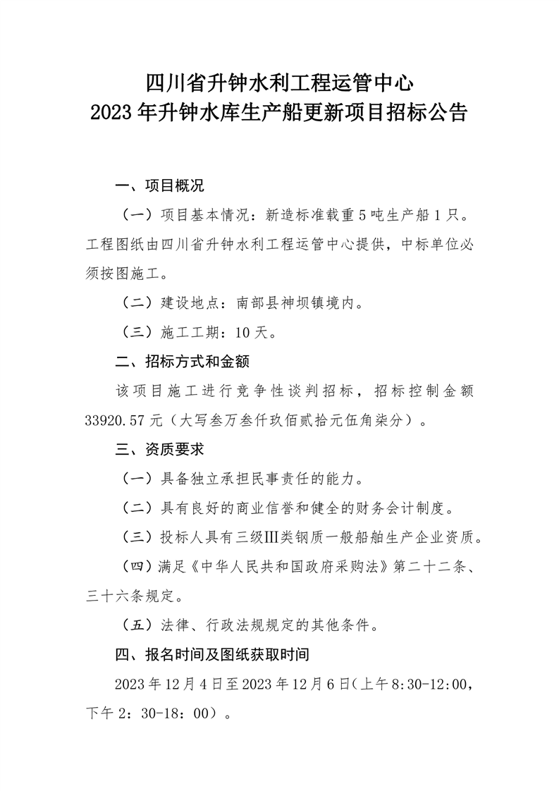 2023年升鐘水庫(kù)生產(chǎn)船更新項(xiàng)目招標(biāo)公告